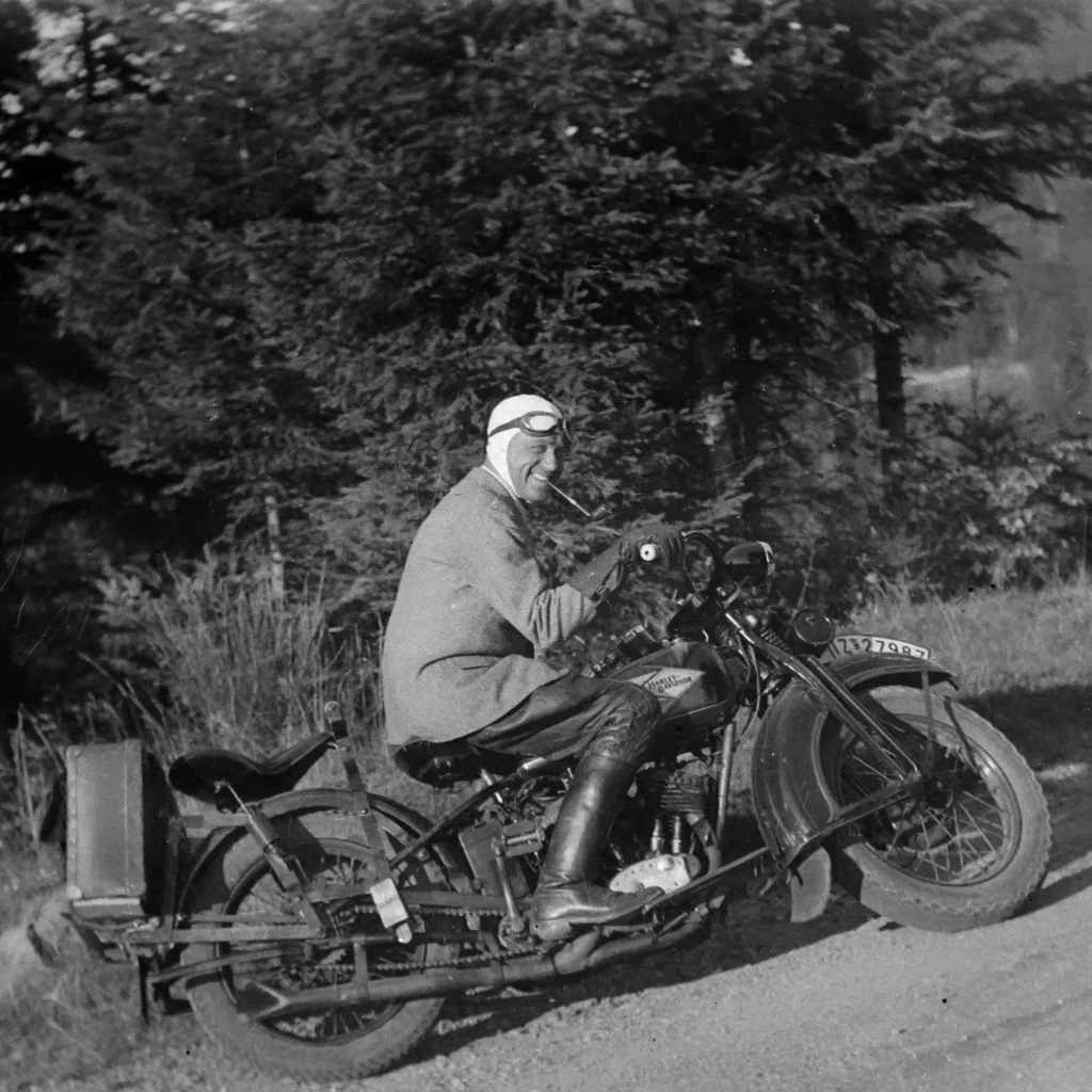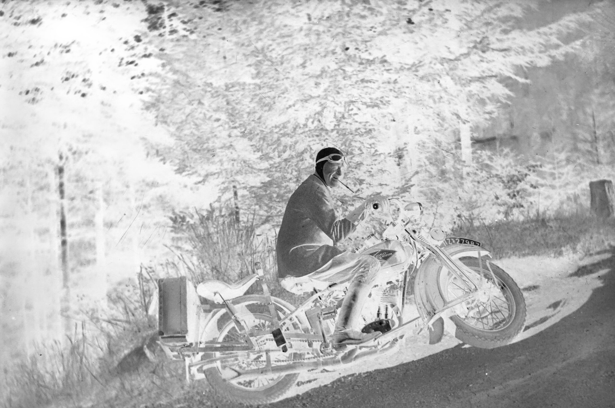 Les trois dernières photographies pourraient provenir d’Allemagne et notamment de la Prusse Orientale (district de Königsberg) dans les années 1932–1933. La moto pourrait être une Harley-Davidson VL/VLD (1200cc flathead).