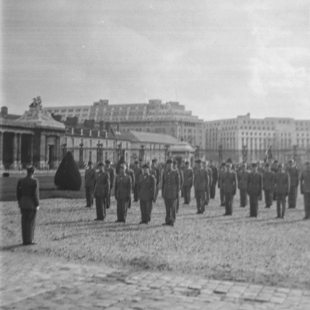 La première photographie carrée se situerait à la Cour d’Honneur des Invalides à Paris, lors d’une cérémonie militaire entre 1947 et 1954.